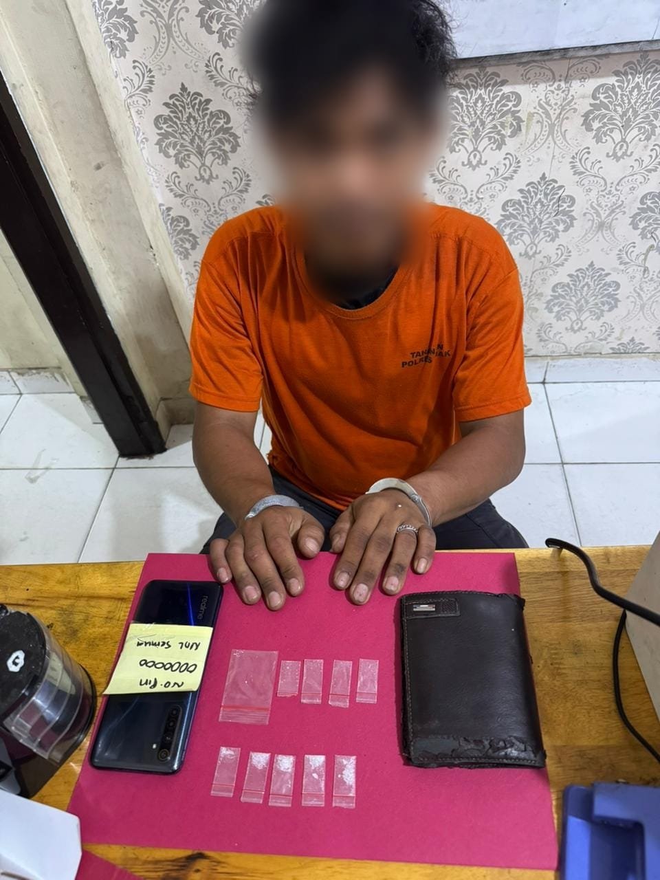 Selain lima paket sabu, polisi juga mengamankan lima plastik klip pembungkus, satu dompet, serta satu unit handphone merek Realme yang diduga digunakan dalam aktivitas peredaran narkotika.