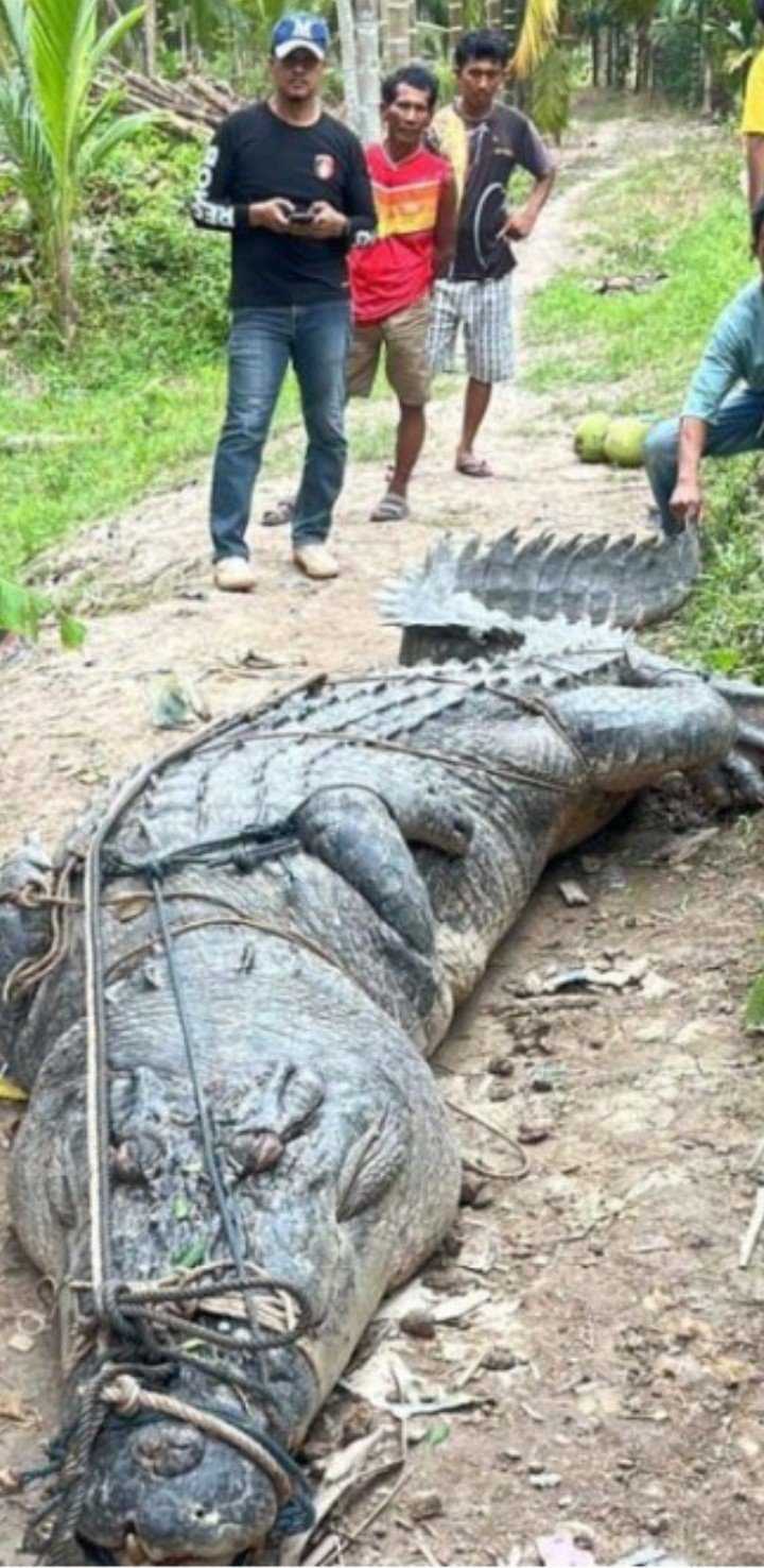 INHIL– Lintaswartakrimsus.com. Seekor buaya berukuran raksasa sepanjang sekitar 7 meter dengan berat diperkirakan mencapai 1 ton berhasil diamankan warga Desa Sungai Undan, Kecamatan Reteh, Kabupaten Indragiri Hilir..