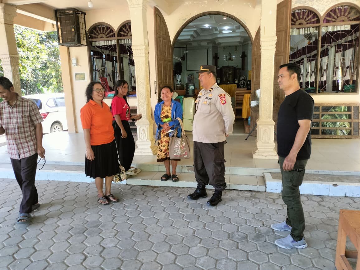 Kehadiran polisi disambut positif oleh pengurus gereja dan jemaat yang merasa lebih tenang melaksanakan ibadah Minggu.. (Andre.Tanjung).