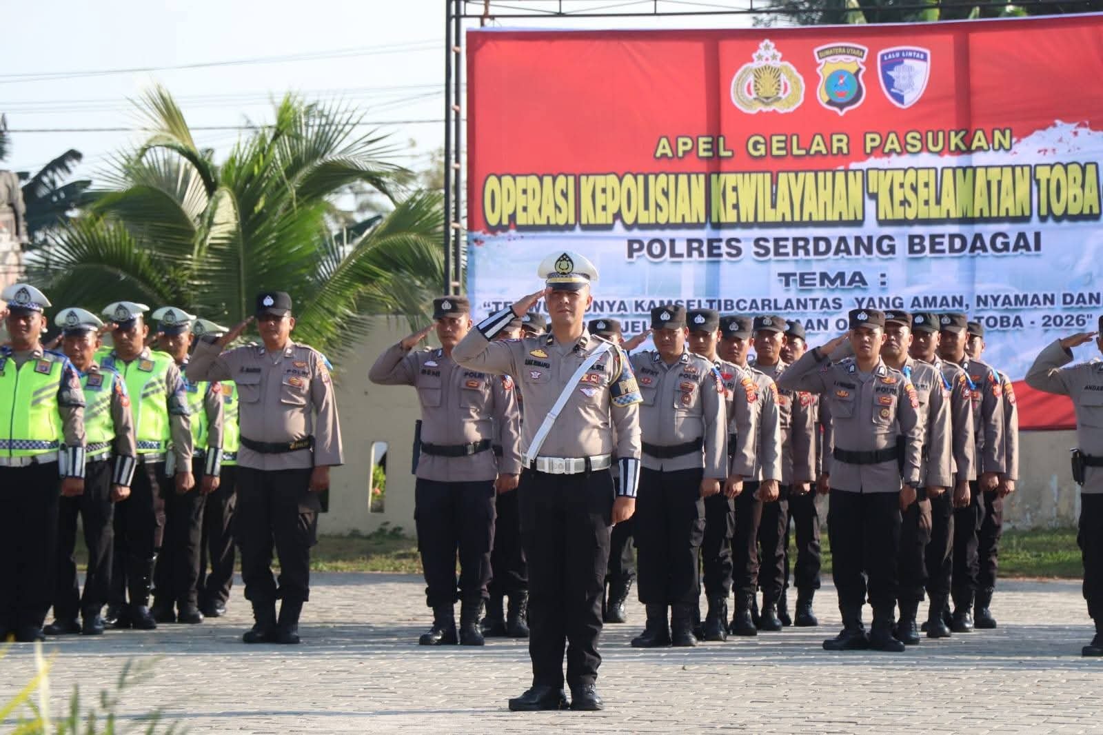 MEDAN. Polres Serdang Bedagai menggelar Apel Gelar Pasukan Operasi Keselamatan Toba 2026 di Lapangan Apel Mapolres Serdang Bedagai, Senin (2/2/2026) pagi. Kegiatan ini menjadi tanda dimulainya operasi kepolisian kewilayahan yang bertujuan meningkatkan disiplin berlalu lintas serta menekan angka kecelakaan di wilayah hukum Polres Sergai.