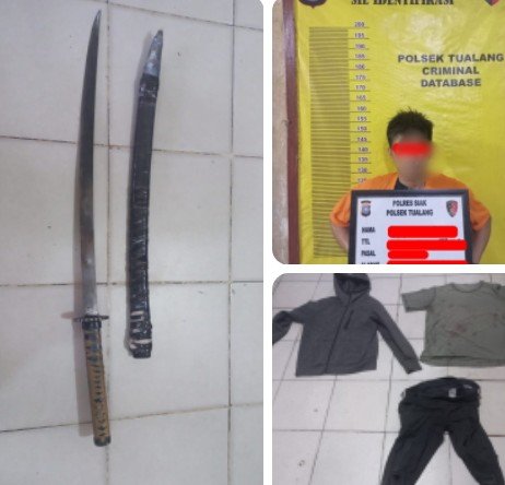 PerawangLintaswartakrimsus.com. Aksi penganiayaan brutal terjadi di Jalan Balik Pipa Caltex, Kelurahan Perawang, Kecamatan Tualang, Kabupaten Siak, Selasa (21/10/2025) sekira pukul 00.30 WIB. Seorang pria bernama Gusti Adiningrat Simangunsong mengalami luka berat setelah dibacok menggunakan senjata tajam jenis samurai oleh pelaku berinisial TA alias T (27), warga Kampung Tualang, Kabupaten Siak. 24/10/2025.