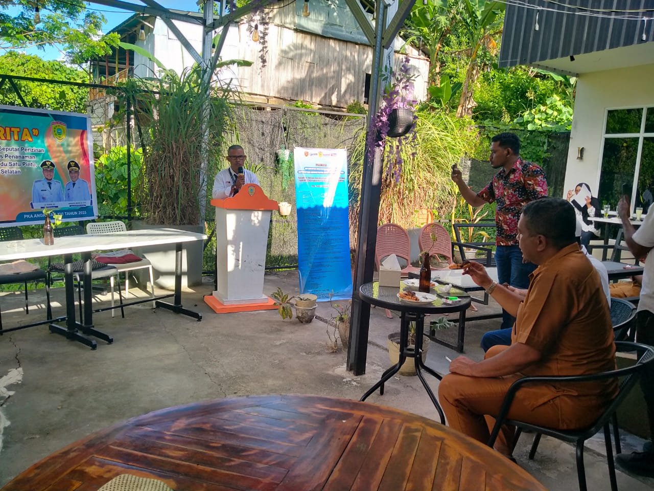 NamroleLintaswartakrimsus. Hakim Souwakil, peserta Pelatihan Kepemimpinan Administrator (PKA) Angkatan XVI Tahun 2025, menggelar kegiatan “Bacarita: Bincang-Bincang Inspiratif Seputar Perizinan dan Investasi” di Kafe Ulataha, Namrole, Selasa (21/10/2025). Acara ini menjadi bagian dari aksi perubahan yang diinisiasinya untuk mendorong inovasi pelayanan publik yang lebih dialogis, transparan, dan partisipatif. Rabu. 22/10/2025.