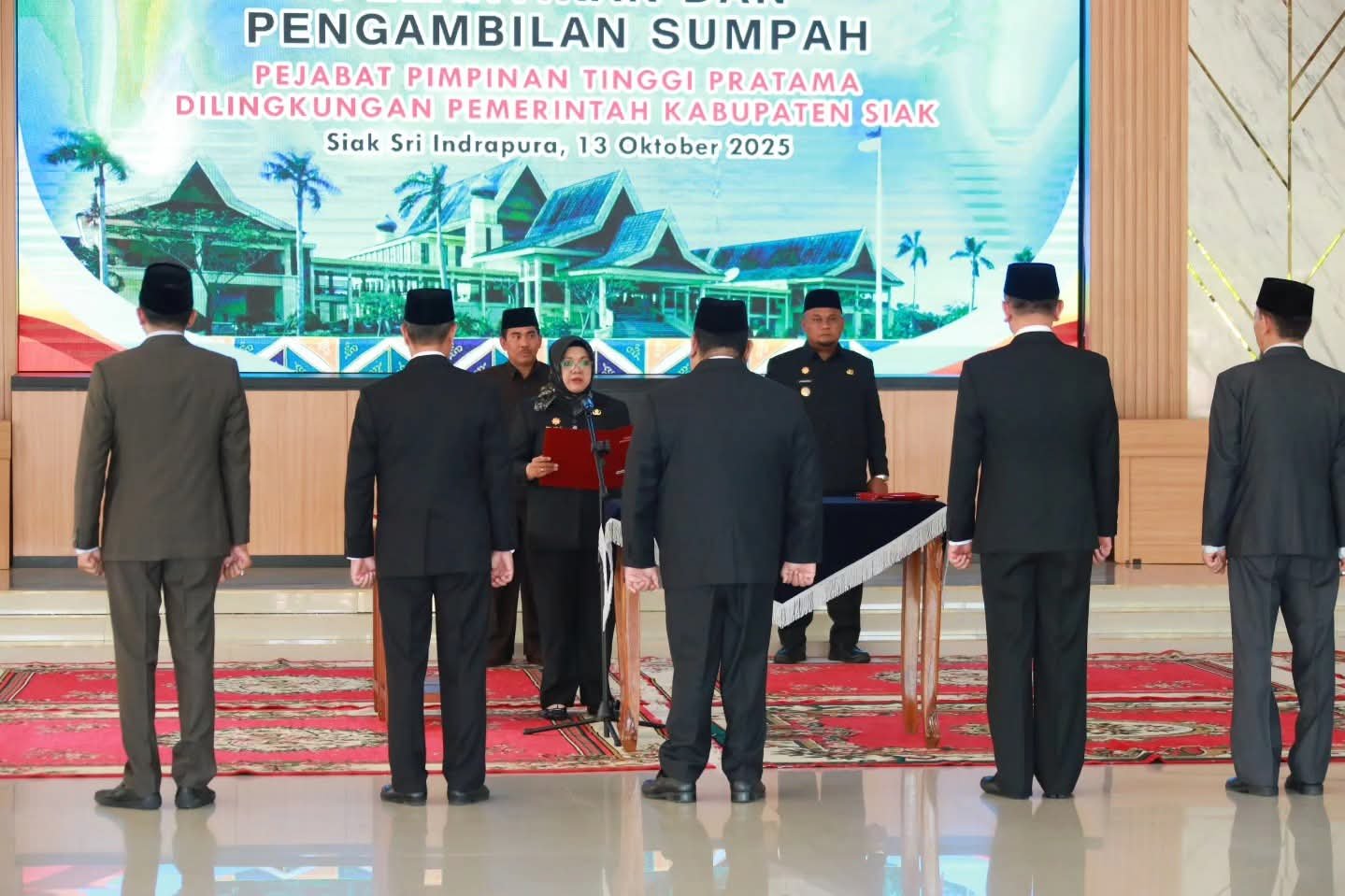Pelantikan tersebut, dilakukan berdasarkan Surat Keputusan Bupati Siak Nomor 100.3.3.2/804/HK/KPTS/2025. Dengan melalui proses seleksi terbuka, yang memungkinkan evaluasi publik. Semua dilakukan secara profesional oleh tim penyeleksi.