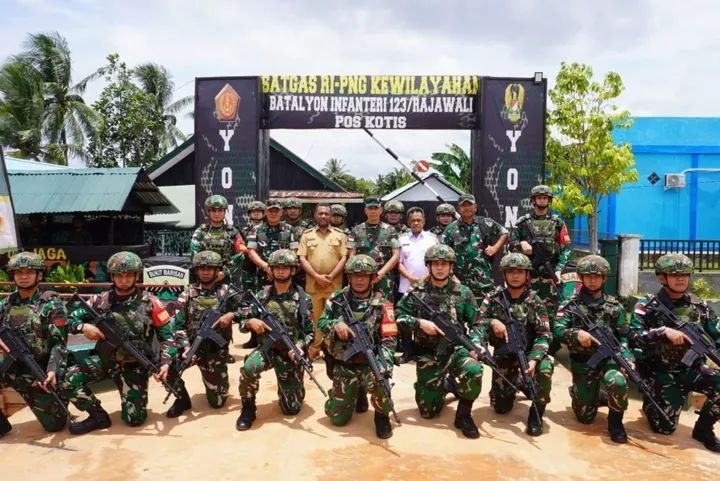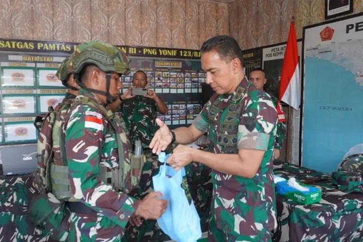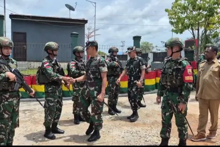 Mappi, Papua Selatan, Rabu 11/03/2026 – Dalam rangka memastikan kesiapan dan memberikan semangat kepada para prajurit yang bertugas, Pangdam XXIV/MT, Mayjen TNI Lucky Avianto, S.I.P., M.S.i, beserta rombongan melakukan kunjungan kerja ke Pos Kotis Satgas Pengamanan Perbatasan (Pamtas) Kewilayahan Yonif 123/Rajawali. Pos yang ditinjau berlokasi di Distrik Obaa, Kabupaten Mappi, Provinsi Papua Selatan. 13/03/2026.