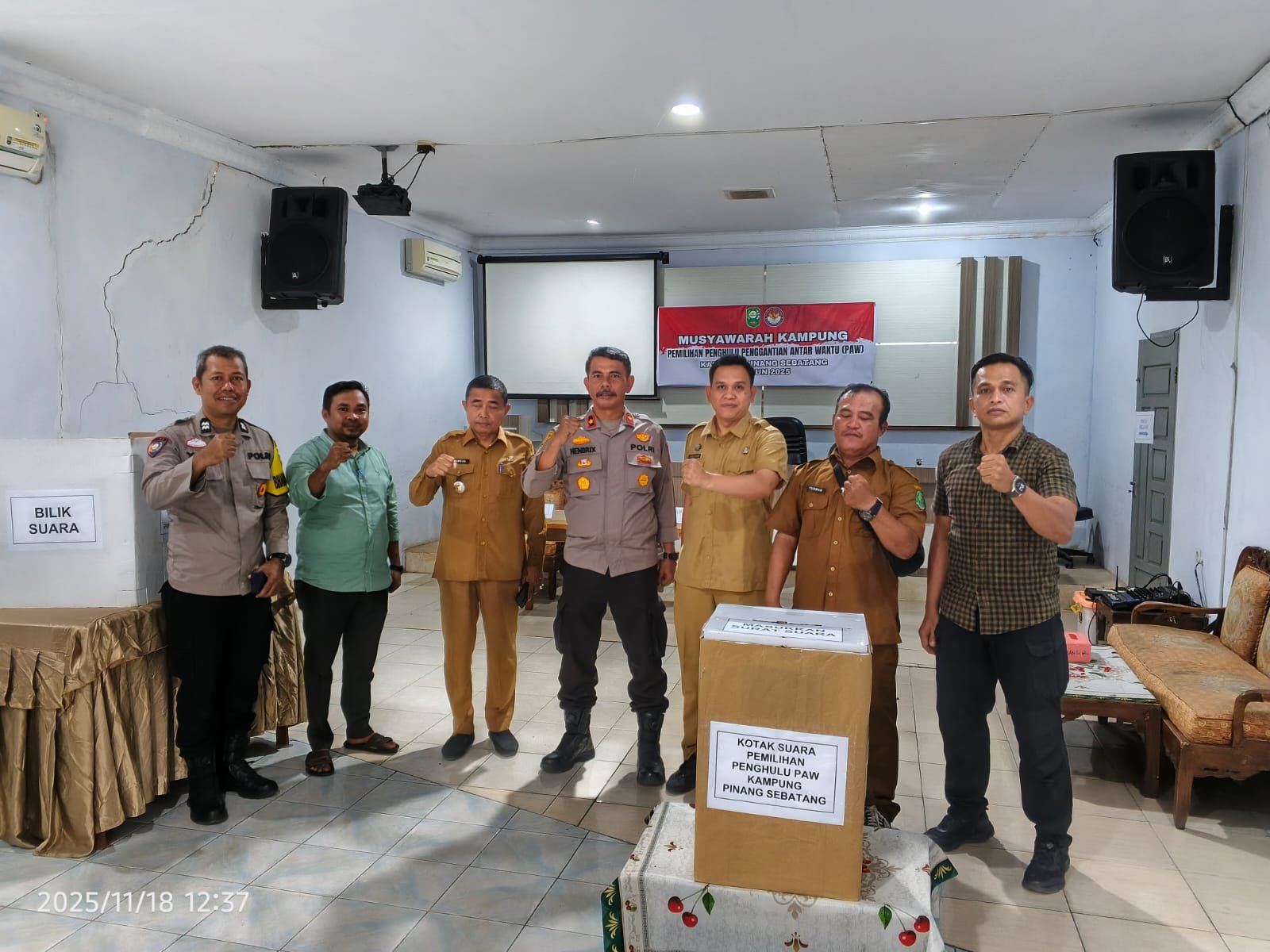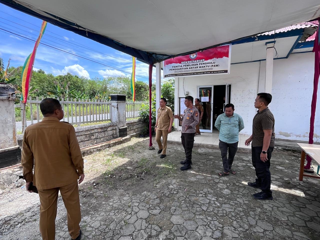 PerawangLintaswartakrimsus.com. Polsek Tualang bersama unsur pemerintah kecamatan melakukan peninjauan lokasi pelaksanaan Pemilihan Pergantian Antar Waktu (PAW) Penghulu Kampung Pinang Sebatang, Selasa (18/11/2025). Kegiatan dilaksanakan di Kantor Kampung Pinang Sebatang pada pukul 12.30 WIB. Selasa. 18/11/2025.