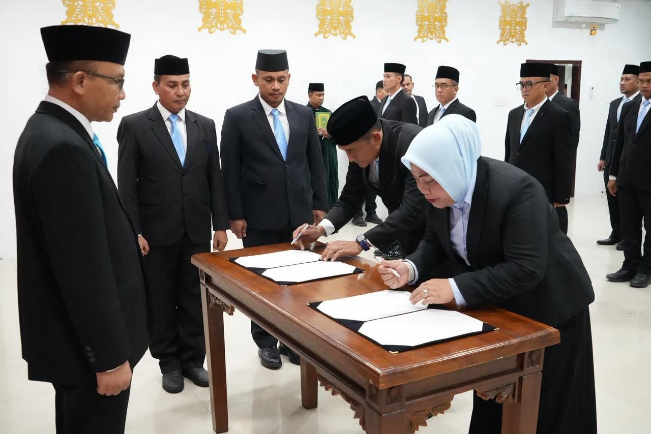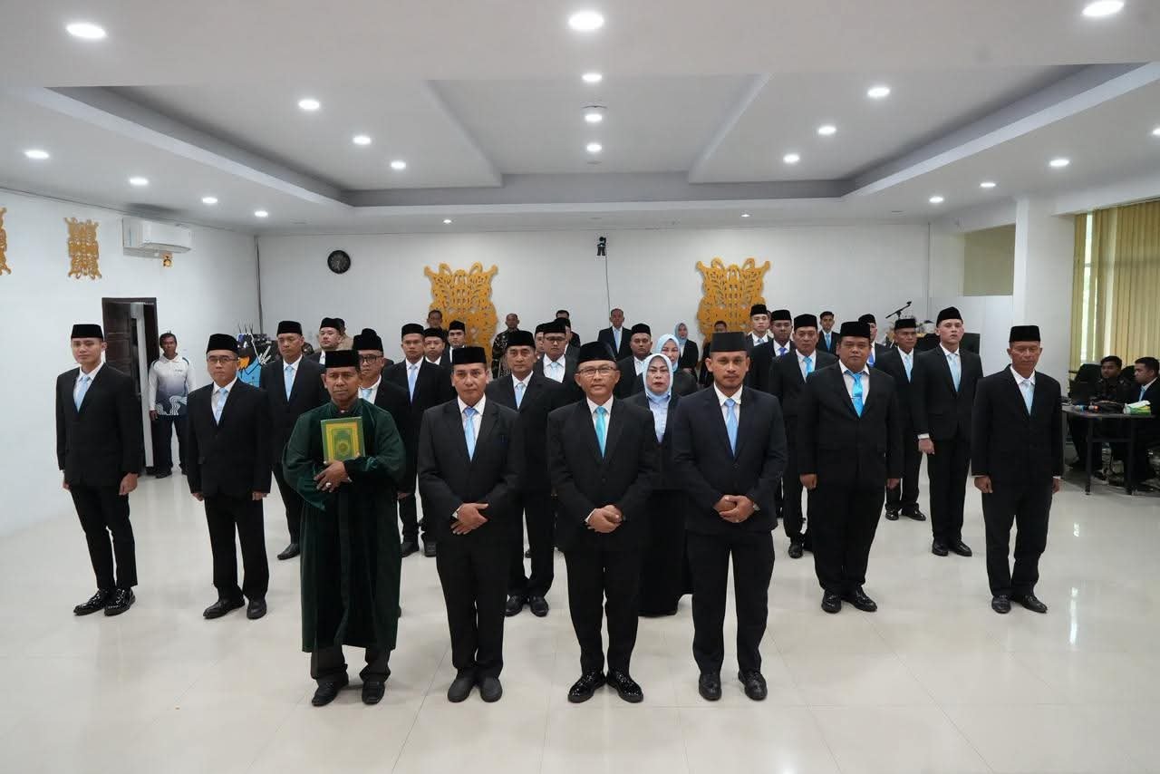 Banda Aceh – Lintaswartakrimsus.com. Kantor Wilayah Direktorat Jenderal Pemasyarakatan (Kanwil Ditjenpas) Aceh telah menyelenggarakan acara pelantikan dan pengambilan sumpah jabatan bagi 26 orang pejabat manajerial di lingkungannya, Jum’at (03/10/2025). Kegiatan ini merupakan tindak lanjut dari Keputusan Menteri Imigrasi dan Pemasyarakatan RI dalam upaya penguatan dan peningkatan kinerja organisasi Pemasyarakatan di Aceh.. Sabtu. 4/10/2025.