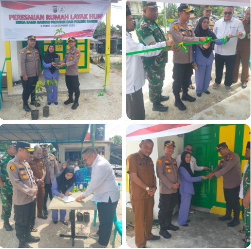 Peresmian ditandai dengan penandatanganan berita acara, pemotongan pita, penyerahan kunci rumah, penyerahan bibit pohon oleh Kapolsek Kandis, serta sesi foto bersama dan makan bersama.