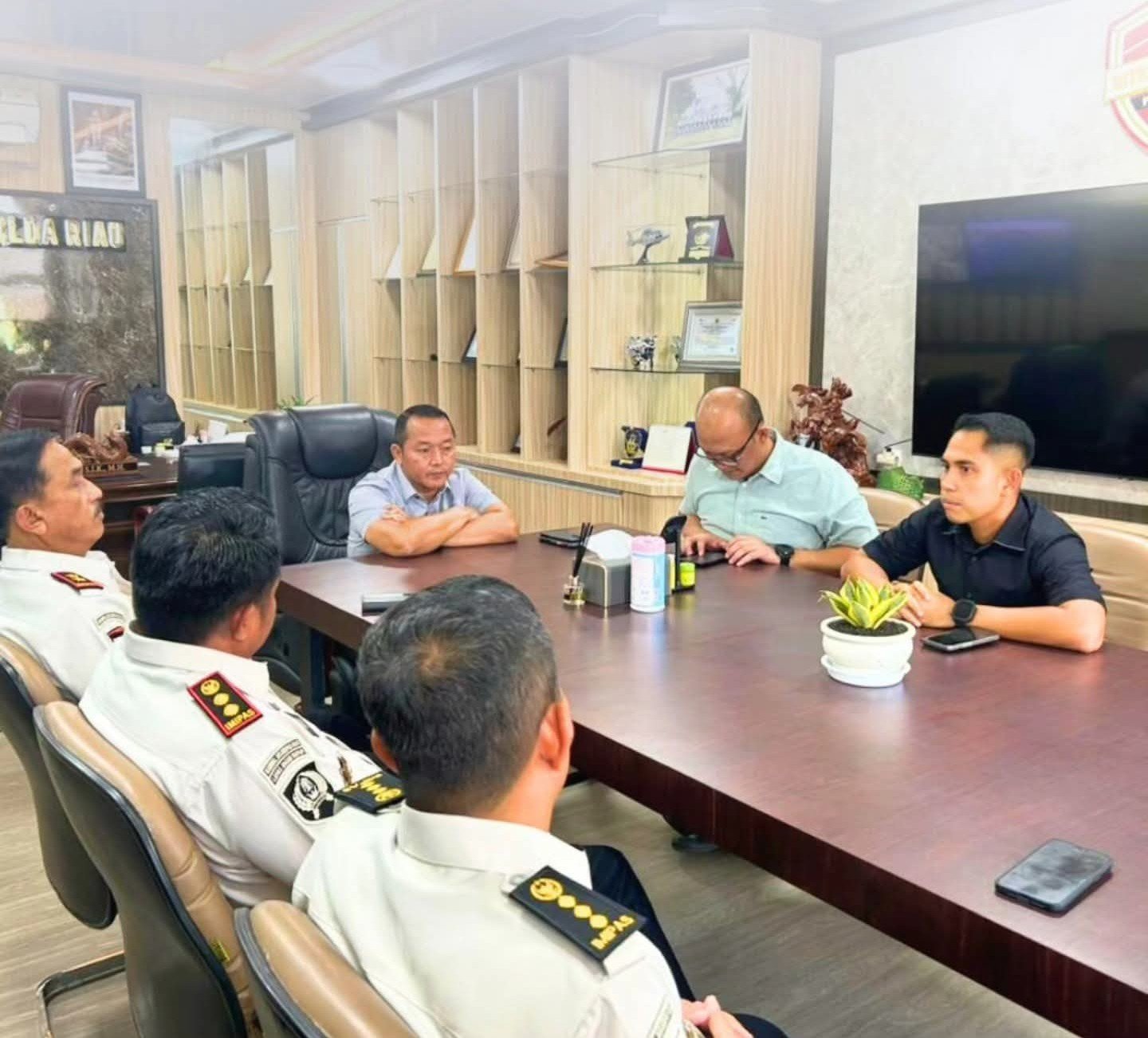Pertemuan tersebut diterima langsung oleh Dirreskrimsus Kepolisian Daerah Riau Kombes Pol Ade Kuncoro Ridwan, SIK, MH, didampingi AKBP Agus Prihandika, SH, SIK selaku Kasubdit 1 dan Kompol I Komang Aswatama, SH, SIK, MH selaku Ps Kasubdit 5.