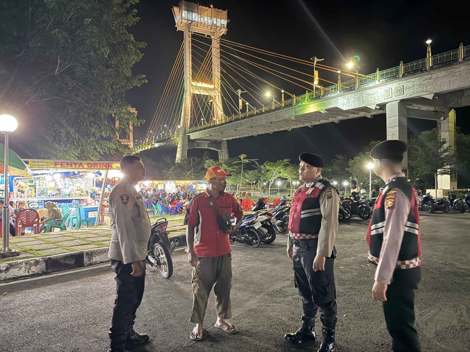 Patroli dialogis di Kawasan Istana Siak dan Siak Lawo bawah jembatan Siak guna meningkatkan interaksi humanis dengan masyarakat.