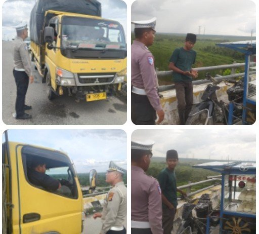 PKL Berjualan, Mobil Truck Berhenti di Atas Jembatan Maredan, Polsek Tualang Beri Himbauan dalam OPS Lilin Lancang Kuning 2025