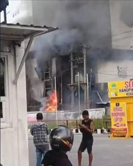 Lintaswartakrimsus.com. MEDAN. Kebakaran Plaza Millenium Medan, Jalan Kapten Muslim, Kecamatan Medan Helvetia, Sabtu (31/1/2026) pagi. Api membara dengan cepat, hampir menghanguskan sebagian sisi bangunan tembok bagian samping. Kobaran api dan asap hitam yang membumbung tinggi sempat membuat heboh dan menjadi sorotan pengendara. 30/01/2026.