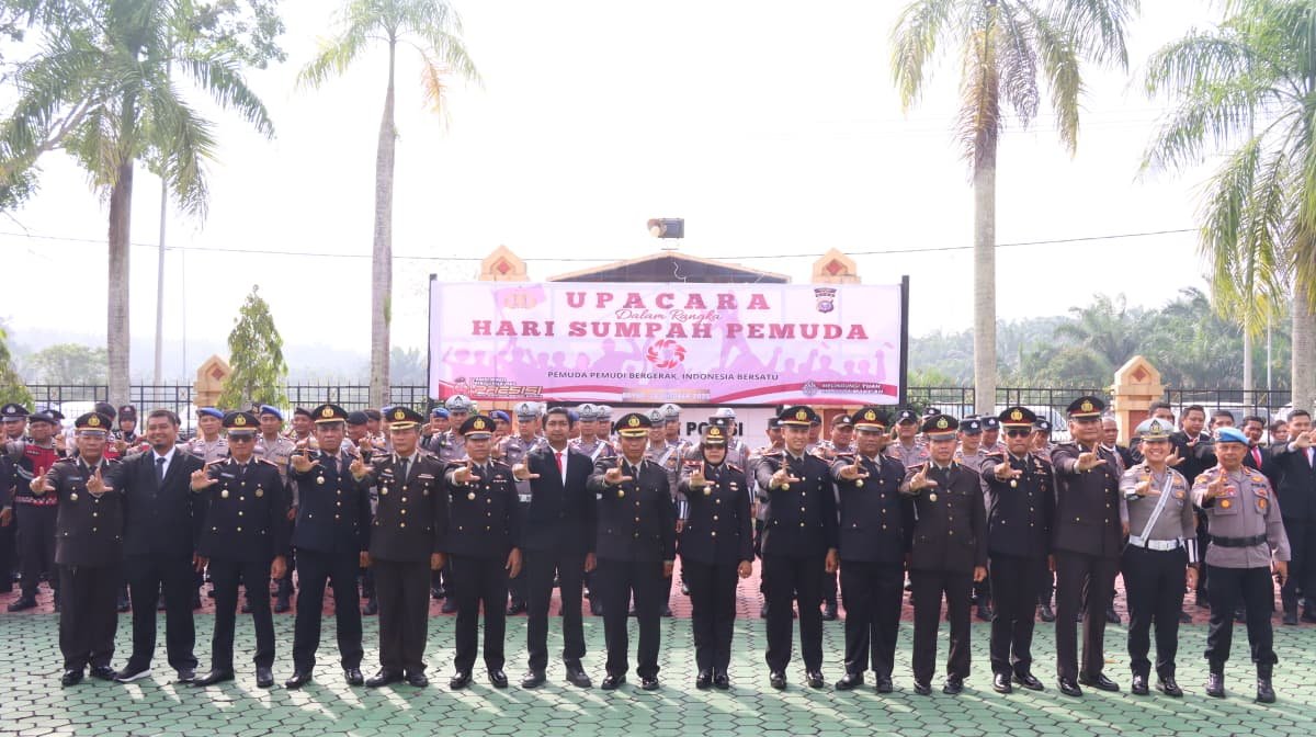 Siak – Lintaswartakrimsus. Dalam rangka memperingati Hari Sumpah Pemuda ke-97 Tahun 2025, Polres Siak menggelar upacara penuh khidmat di Lapangan Apel Mapolres Siak, Selasa (28/10/2025) pagi. Kegiatan ini mengusung tema nasional “Pemuda Pemudi Bergerak, Indonesia Bersatu”, yang menjadi momentum refleksi dan penguatan semangat persatuan di tengah dinamika bangsa.