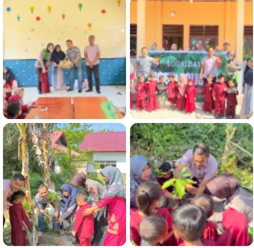 Kegiatan dilanjutkan dengan penanaman bibit pohon secara simbolis bersama siswa dan guru PAUD, serta pemberian makanan bergizi berupa susu untuk meningkatkan kesehatan anak-anak. Momen kebersamaan ini diakhiri dengan sesi foto bersama seluruh peserta.