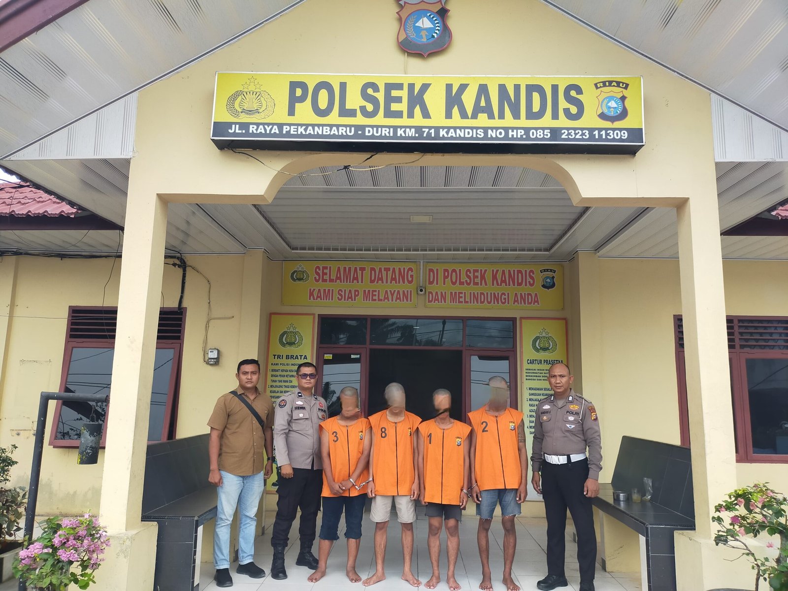 Berbekal informasi tersebut, Tim Opsnal Reskrim Polsek Kandis bergerak cepat dan pada Selasa malam (28/10/2025) berhasil menangkap empat terduga pelaku masing-masing berinisial JH, JL, SL, dan FS di dua lokasi berbeda sekitar wilayah Kecamatan Kandis.
