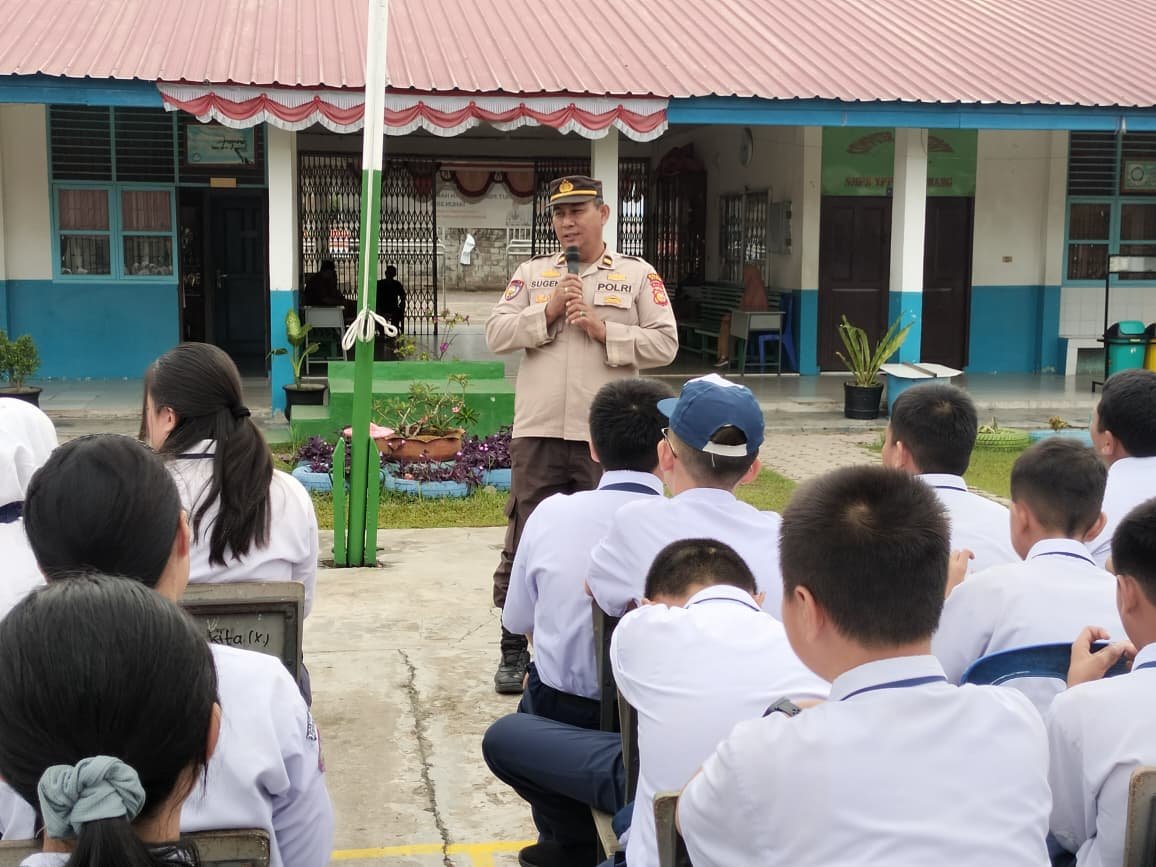 Perawang – Lintaswsrtakrimsus.com. Polsek Tualang melaksanakan kegiatan sosialisasi bahaya narkoba, tawuran pelajar, bullying, serta tata tertib berlalu lintas kepada ratusan siswa SMPS YPPI Perawang, Kecamatan Tualang, Kabupaten Siak, Senin (15/12/2025).