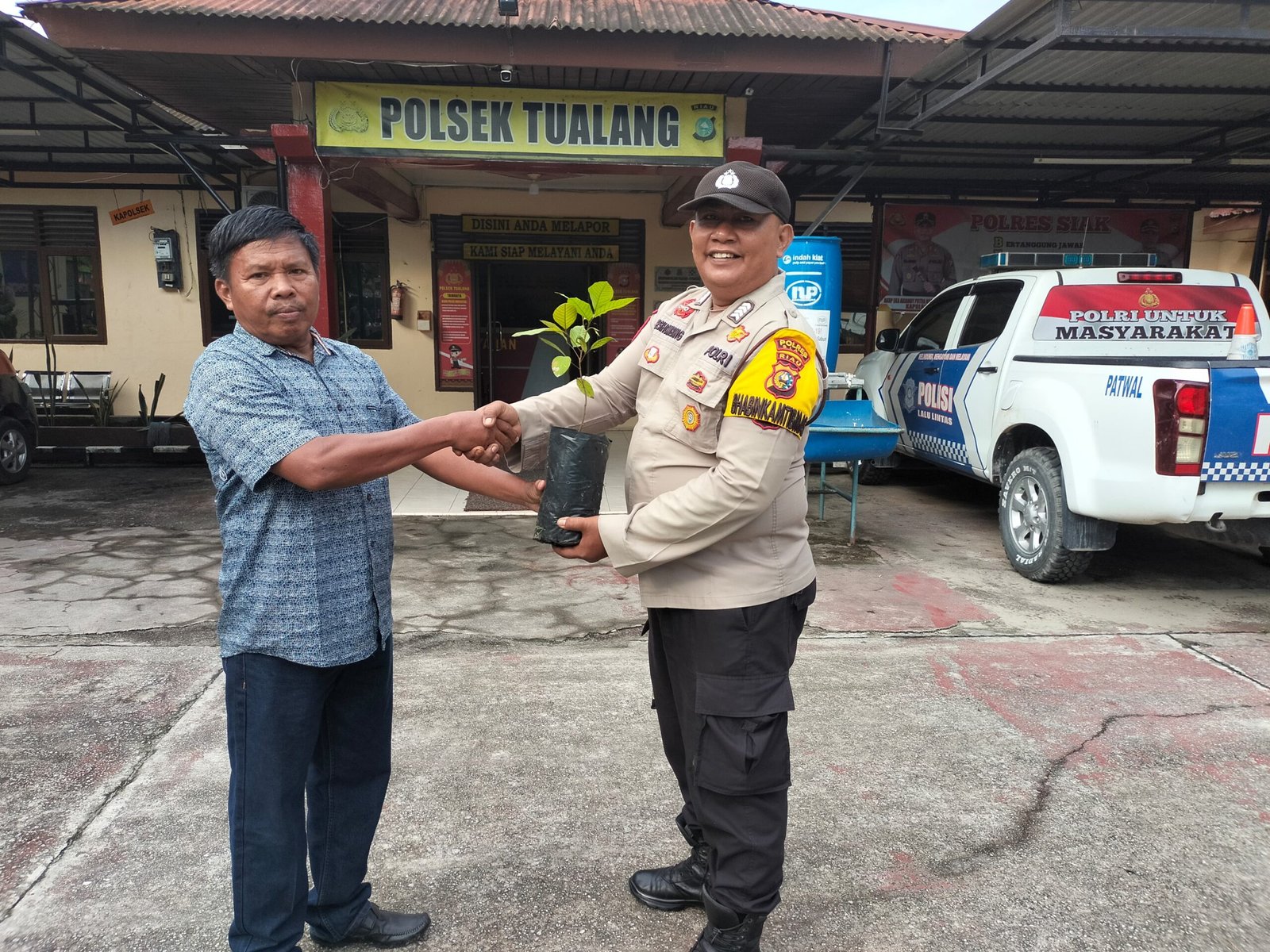 Tualang, —Lintaswartakrimsus.com Dalam rangka memperingati hari ulang tahun salah satu personel, Polsek Tualang melaksanakan kegiatan simbolis berupa pemberian dan penanaman bibit pohon sebagai wujud apresiasi serta kepedulian terhadap lingkungan.