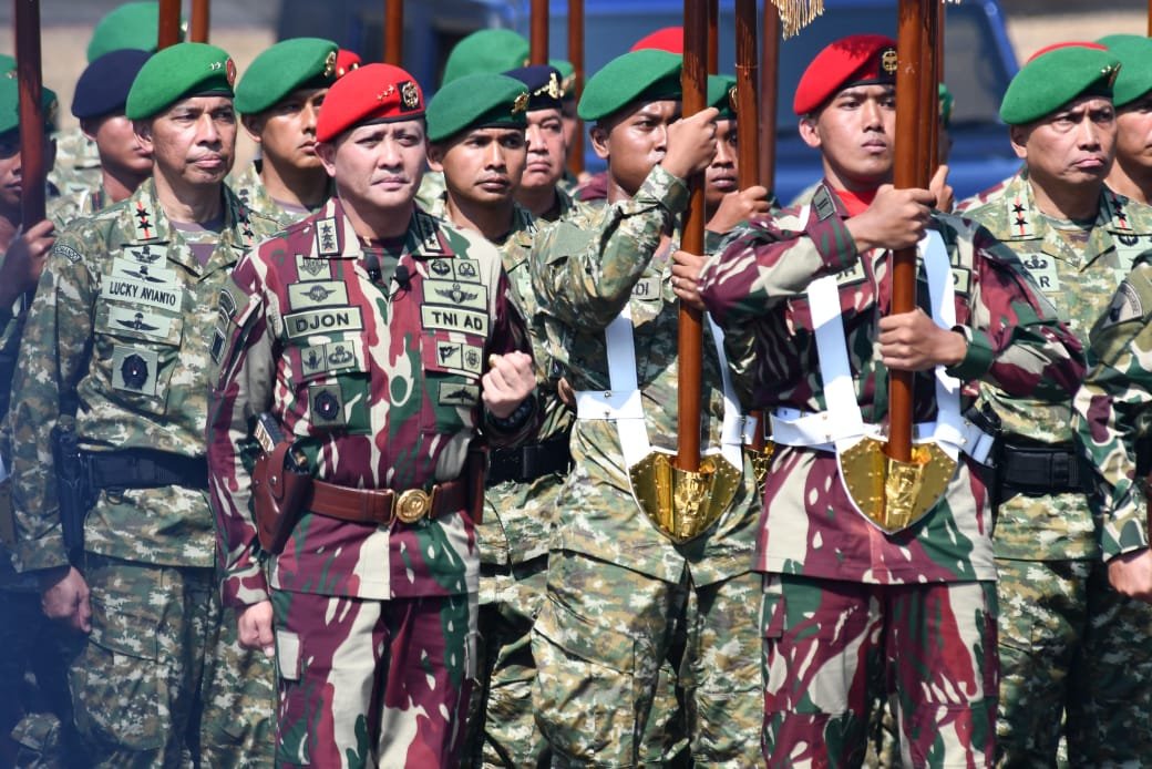 Untuk mendukung gelar pasukan di Batujajar, TNI AD mengerahkan 10.817 personel dan 105 unit alutsista, mulai dari kendaraan tempur berat hingga sistem pertahanan udara. Upacara peresmian ditutup dengan demonstrasi bela diri militer, penanggulangan terorisme, _fly pass_ pesawat udara dari tiga matra TNI, serta _dropping_ logistik dari udara, yang seluruhnya mencerminkan kesiapan TNI yang modern, profesional, dan responsif terhadap dinamika ancaman serta kebutuhan pembangunan nasional. *(Dispenad)*
