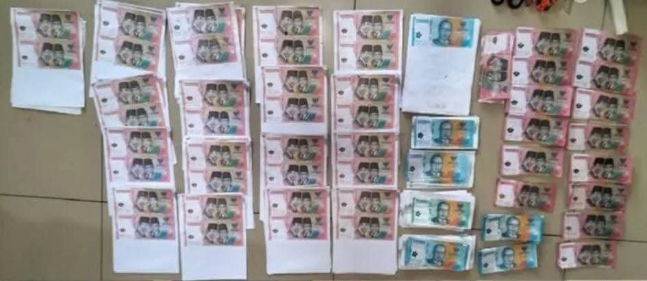 Kita amankan upal pecahan seratus ribu yang sudah dipotong sebanyak Rp14,5 juta. Lalu Rp6 juta pecahan lima puluh ribu yang sudah dipotong, Rp16,4 juta pecahan seratus ribu yang belum dipotong, dan Rp300 ribu pecahan lima puluh ribu yang belum terpotong,” ungkapnya, Senin (24/11/2025).