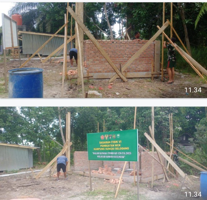 Satgas TMMD Kodim 0322/Siak Pacu Pekerjaan, Pembersihan Sekitar TMAB dan Pembuatan MCK Capai Tahap Lanjut
