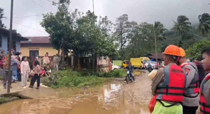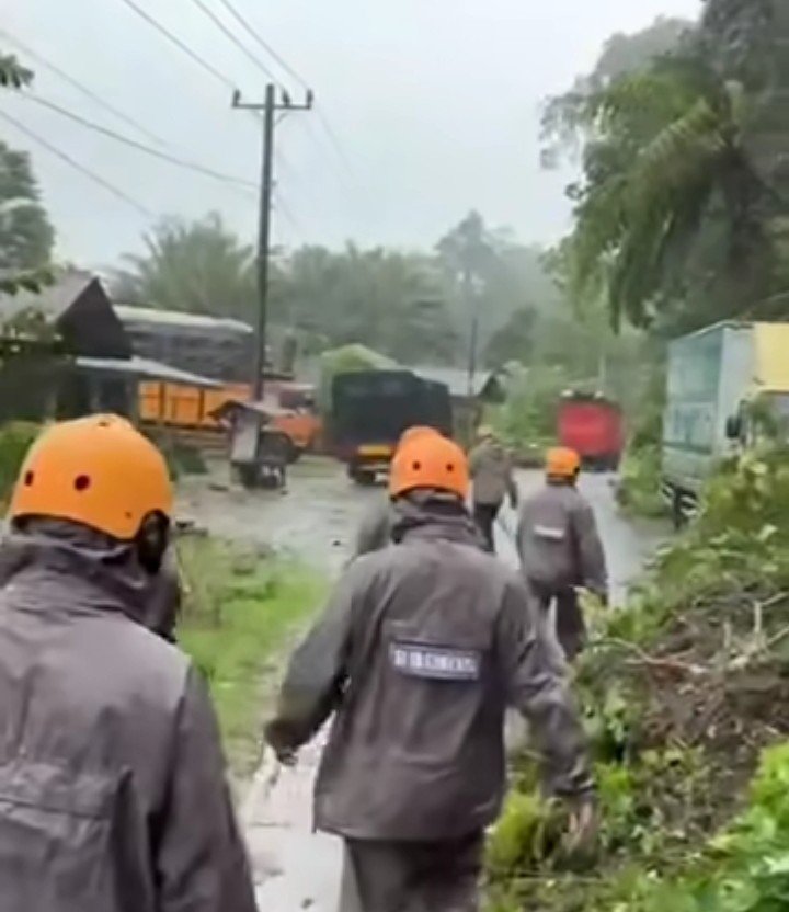 Material tanah, batu, dan kayu yang turun dari lereng bukit menutup total akses jalan lintas serta mengancam rumah-rumah warga di sekitar titik longsor. Dalam situasi penuh risiko tersebut, satu SST Personel SAR Brimob Batalyon C bergerak menyisir lokasi sambil memberikan bantuan darurat kepada warga yang panik dan terjebak.