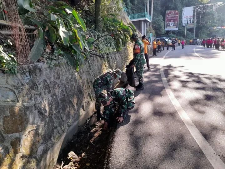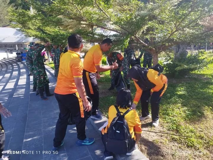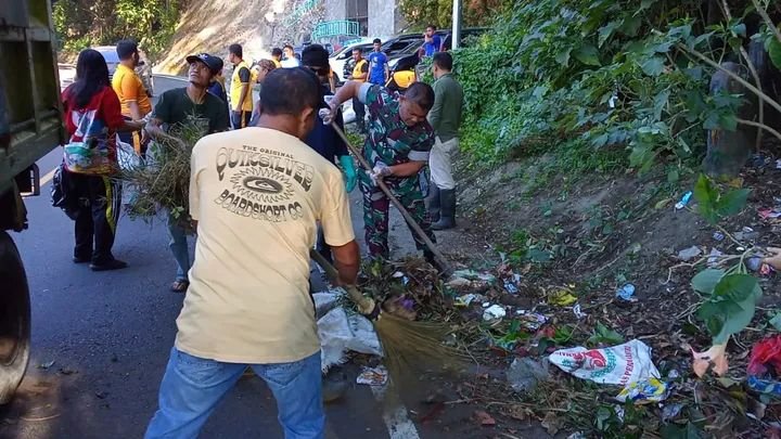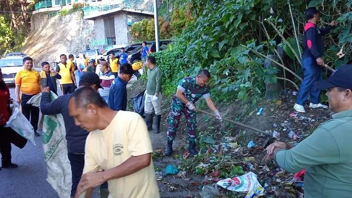 Simalungun – Sebagai wujud kepedulian terhadap kelestarian lingkungan dan keindahan kawasan wisata, Danramil 11/Girsang Sipangan Bolon Kodim 0207/Simalungun Kapten Inf P. Sitorus bersama Babinsa, Polres Simalungun, Pemerintah Daerah, serta masyarakat setempat melaksanakan gotong royong pembersihan lingkungan dalam rangka mendukung Gerakan Indonesia Asri. 8/2/2026.