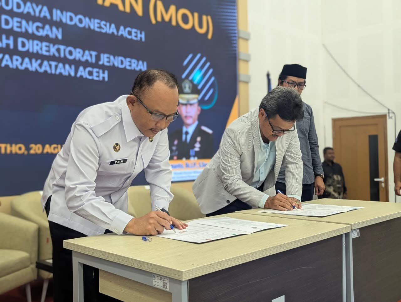 Banda Aceh – Lintaswartakrimsus. Upaya pembinaan warga binaan di Aceh memasuki babak baru yang lebih holistik. Hari ini, Kantor Wilayah Direktorat Jenderal Pemasyarakatan (Kanwil Ditjenpas) Aceh dan Institut Seni Budaya Indonesia (ISBI) Aceh resmi menandatangani Nota Kesepahaman (MoU) untuk mensinergikan seni, budaya, dan pendidikan dalam sistem Pemasyarakatan.