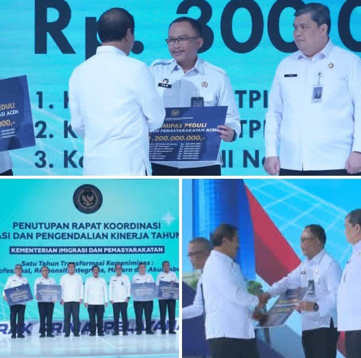Jakarta – Lintaswartakrimsus.com. Kantor Wilayah Direktorat Jenderal Pemasyarakatan (Kanwil Ditjenpas) Aceh menerima bantuan kemanusiaan dari Program Kemenimipas Peduli sebesar Rp1,2 miliar. Bantuan tersebut diserahkan di sela-sela penutupan Rapat Koordinasi Evaluasi dan Pengendalian Kinerja Tahun 2025 Kemenimipas di Jakarta, Rabu. (17/12/2025).