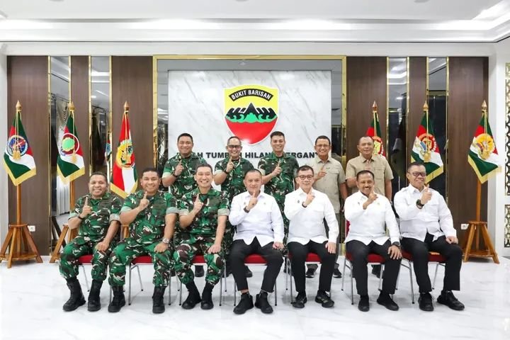 Medan – Wakil Menteri Koordinator Bidang Politik dan Keamanan Indonesia Lodewijk Freidrich Paulus beraudiensi dengan Pangdam I/Bukit Barisan Hendy Antariksa di Ruang Kerja Pangdam I/BB Lantai 2, Makodam I/Bukit Barisan, Selasa (24/2/2026), sebelum melanjutkan kunjungan kerja ke Aceh Utara.